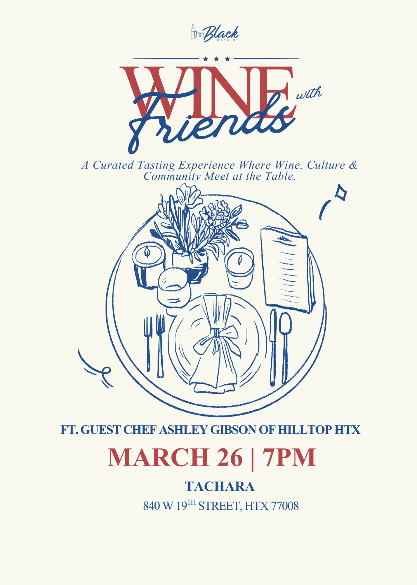 It’s March we’re celebrating Women’s History Month and toasting to some amazing women in hospitality with the kickoff of our new series W/w/F. Not quite a wine tasting, not really a dinner party, but a foundation for collaboration and storytelling through the minds of some of Houston’s brightest talents. A quarterly 4-part series that will engage the palate and energize the spirit. Southern and Gulf Coast inspired menu with a flight of wines from women winemakers and women-owned brands paired for the season and the feast. Our first featured chef is none other than Ashley Gibson of Hilltop Catering. Pre-reception cocktails sponsored by woman-owned Mijenta Tequila.