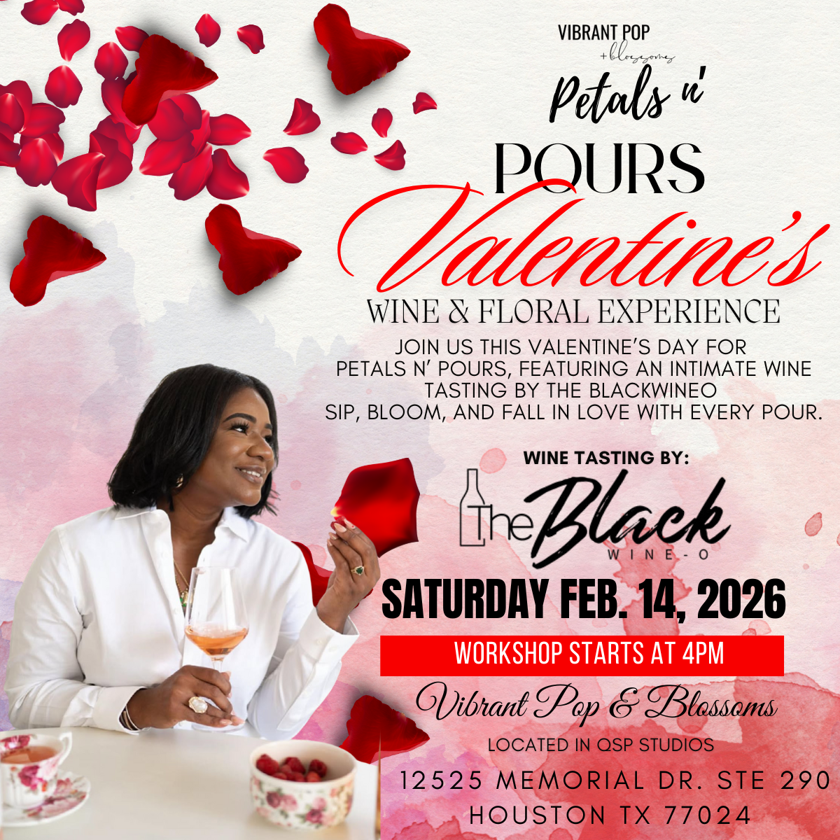 Join Vibrant Pop + Blossoms and The Black Wine-O for an unforgettable floral workshop and wine tasting experience on February 15th @ 4pm in celebration of Valentine’s Day. Grab your best friend, boo, or the one you love the most for this unique and festive experience. Bottles available for purchase on-site or preorder with ticket. Can’t wait to see what you create with us!